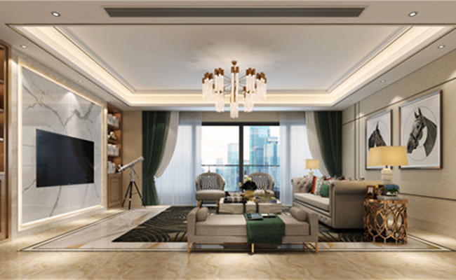 本案為該項目旗艦戶型,面對的客戶也是高品質的精英人群。他們隨著時間與年齡的增長,財富與閱歷也在不斷地提高。 人們開始追求高品質高格調的生活。這種生活方式不僅僅是因為財富的增長,與閱歷的增長,沉淀。使得這一代的精英開始追求典雅奢華的生活方式。在客廳的設計當中,我們充分利用了戶型的特點,在沙發的布置上我們做成了兩組沙發組團對坐的形式,這是典型的豪宅才會出現的設計手法,不僅大氣,也能讓客戶坐在這里,欣賞窗邊的景色。