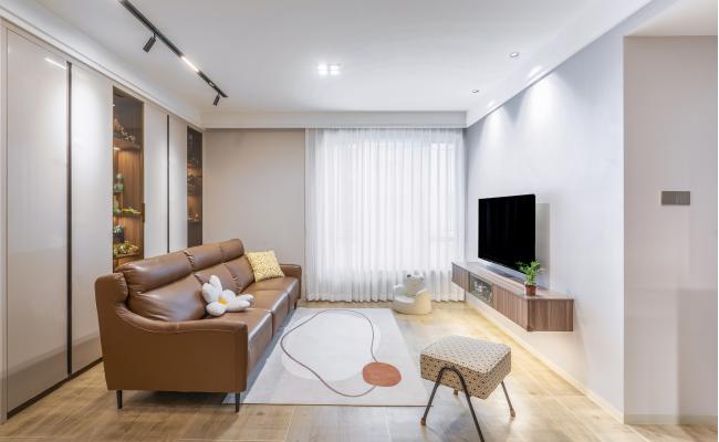 本案業主一家四口,夫婦二人和兩個兒子;平時夫婦一家四口常住; 設計理念:此項目為中古風去客廳化設計,室內空間樸素、大方,但其功能性強。從細節上來說,顏色不用太多,布局大方,格調素雅。讓生活節奏慢下來感受一杯茶一本書的慢生活,但又富有朝氣的生活特征,沒有過分的裝飾,采用地磚、木地板、藝術漆、聯動推拉門搭配,滿足業的對設計及功能使用上的需求。