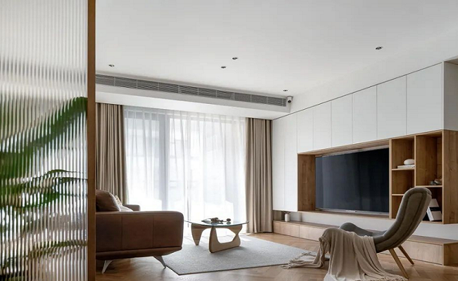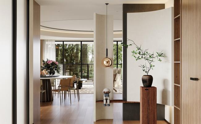 原木風(fēng)去客廳化的設(shè)計(jì):去客廳化并非取消客廳功能,而是打破傳統(tǒng)客廳“電視為中心”的固化布局,以人的生活需求為核心重構(gòu)空間,讓客餐區(qū)成為兼具休閑、社交、辦公、親子等多元功能的復(fù)合區(qū)域,摒棄“沙發(fā)+茶幾+電視”的刻板組合,本案以休閑座椅、開放式書架與餐區(qū)形成聯(lián)動(dòng)核心,既保留靜坐休息、品茶閱讀的休閑屬性,又通過客餐無界設(shè)計(jì),讓家人互動(dòng)、朋友小聚的社交場(chǎng)景更流暢,空間利用更靈活??臻g里沒有厚重的電視柜、大型茶幾的堆砌,僅用輕盈的布藝家具、自然綠植點(diǎn)綴,讓空間回歸“舒適居住”的本質(zhì),契合現(xiàn)代人對(duì)居家松弛感的追求。