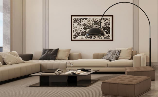 客餐廳整體色調以黑白灰調子為主。采用無主燈設計,簡化造型。整體空間干凈利落。