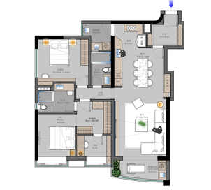 原來獨(dú)立的三房改成主臥大套房和小孩房