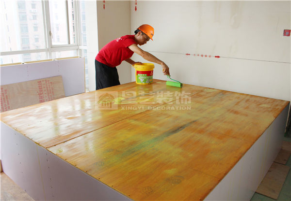 用底漆涂刷一遍,淺色飾面板正反面都要涂刷底漆。