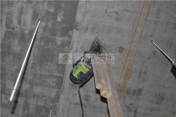 A、吊桿固定:沿主龍骨彈線位置,用沖擊磚打孔安裝頂爆固定吊桿。
